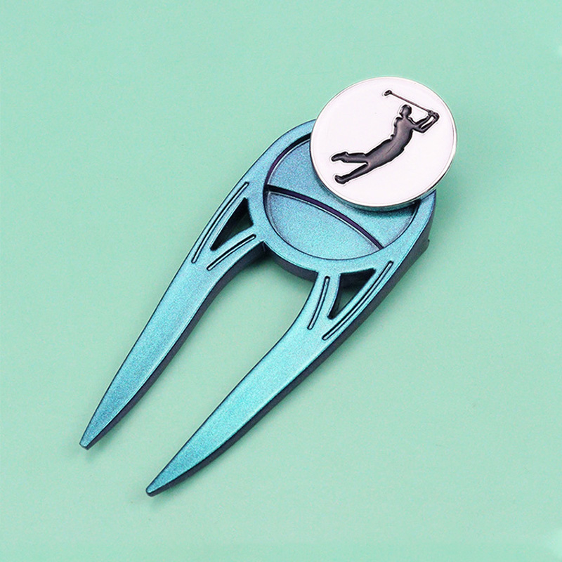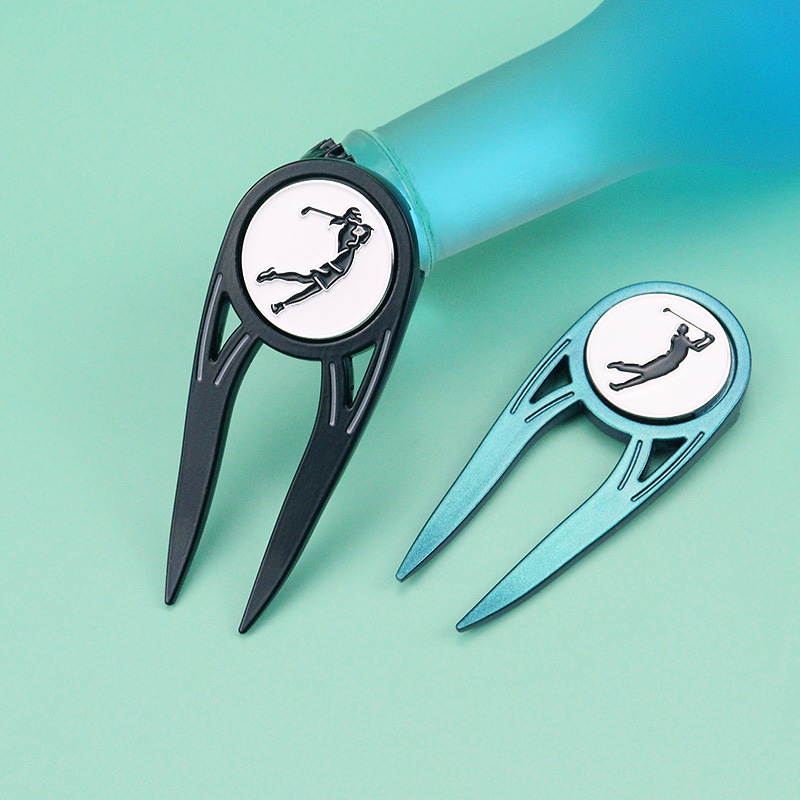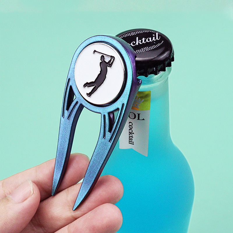 This multi-functional tool (teal/black finishes) features a golf player motif—ideal for green repairs and opening drinks. Sleek, durable, and perfect for golfers who want gear that blends sporty style with practical, post-round utility.