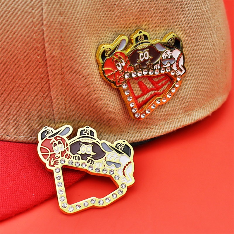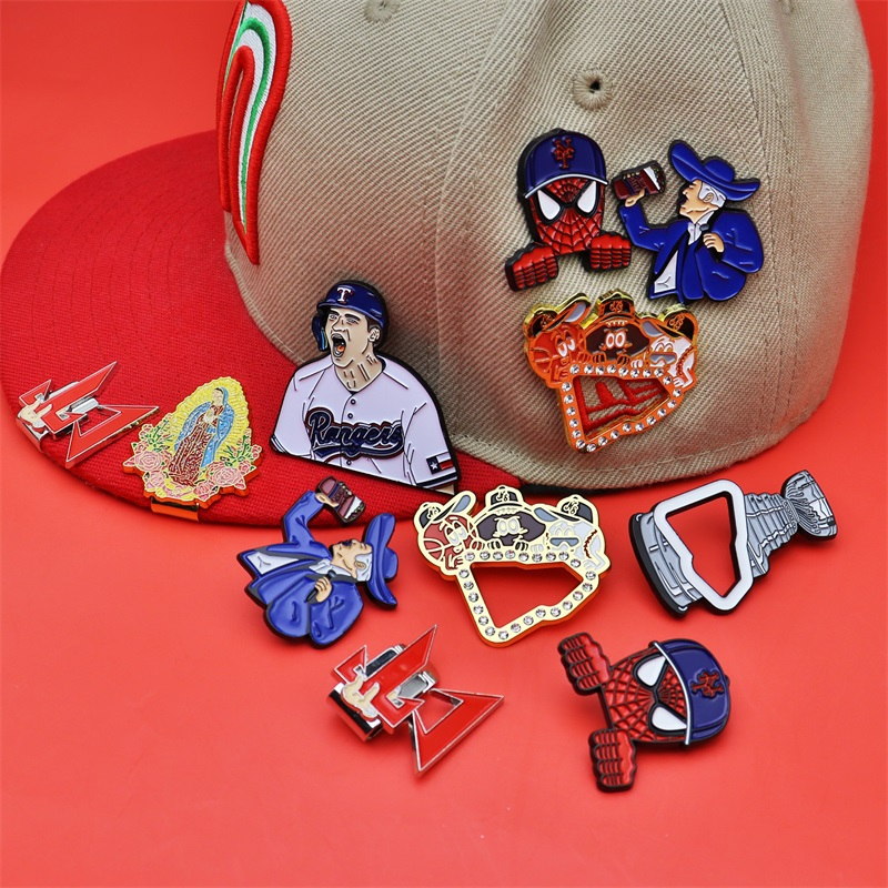 These pins feature diverse shapes: baseball player silhouettes, Spider-Man cap contours, cowboy figures, and more. Designed with vibrant enamel hues, rhinestone trims (on some), intricate details, and metallic outlines, they blend vivid styling for eye-catching hat/bag decor.