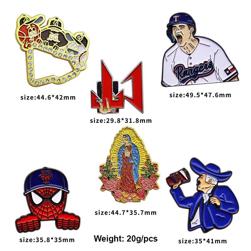 Vibrant Cap & Bag DecorCovers baseball, superhero, cowboy & religious designs—colorful, varied-style enamel pins, ideal trendy adornments for sprucing up hats or bags.