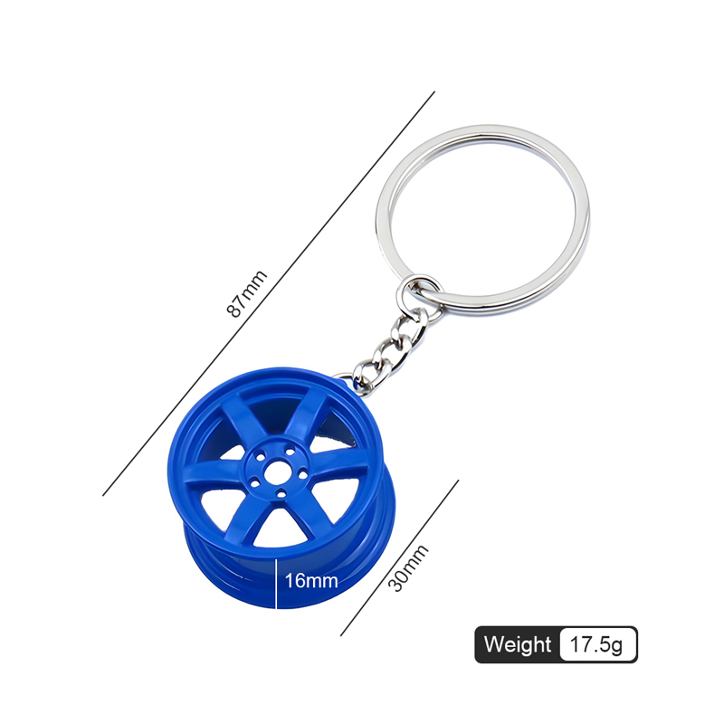 This keychain features miniature car wheel replicas in metal (white, green, black, rainbow, gold, red, silver, blue). With an automotive, rim-inspired design, the durable metallic construction appeals to car enthusiasts and those who love stylish, detailed auto accessories.