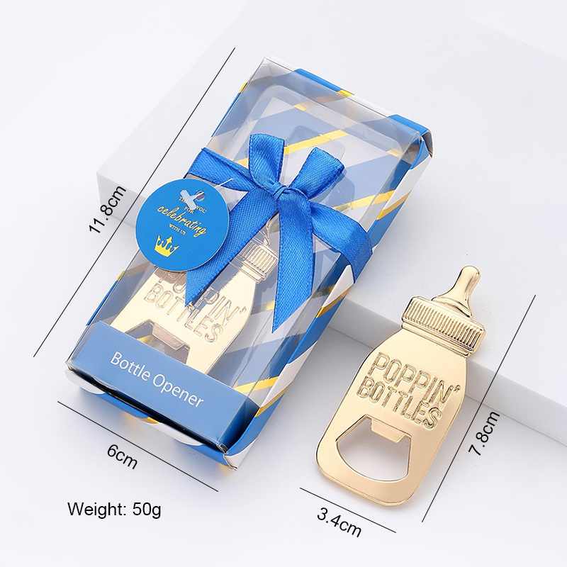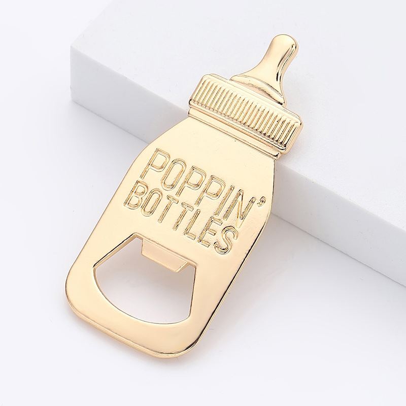 This 50g (7.8cm) gold opener mimics a baby bottle, etched with "Poppin' Bottles." It pops caps easily, blending playful humor with celebratory flair—ideal for baby showers, gender reveals, or a quirky gift for new parents’ gatherings.