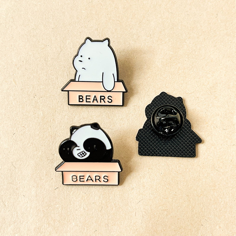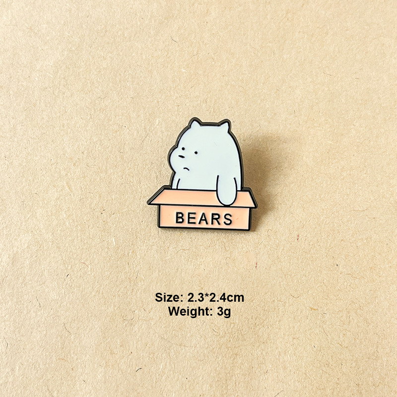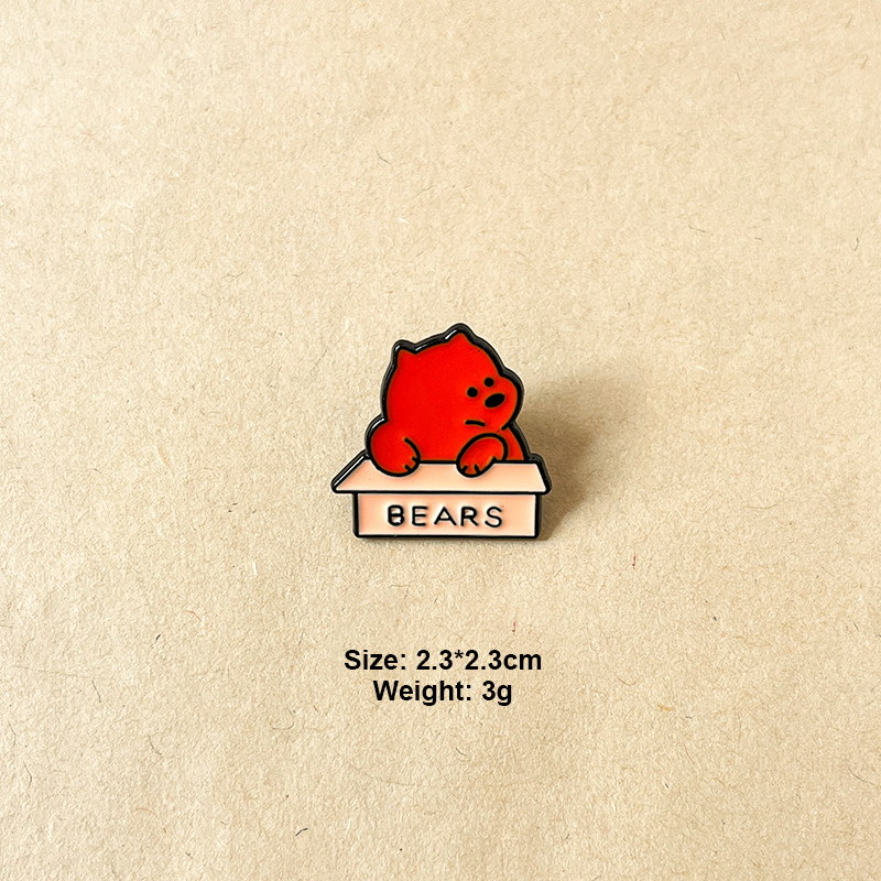 3 charming pins (white bear, red bear, panda in "BEARS" boxes) — minimalist design, playful expressions. Perfect for adding cozy flair to bags/jackets; ideal for bear lovers’ daily wear or cute character collectibles.