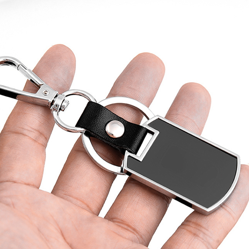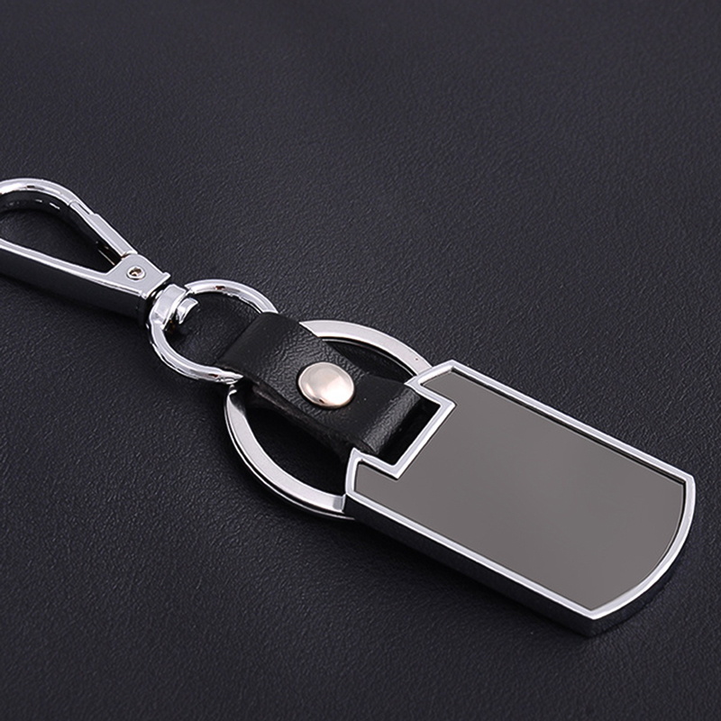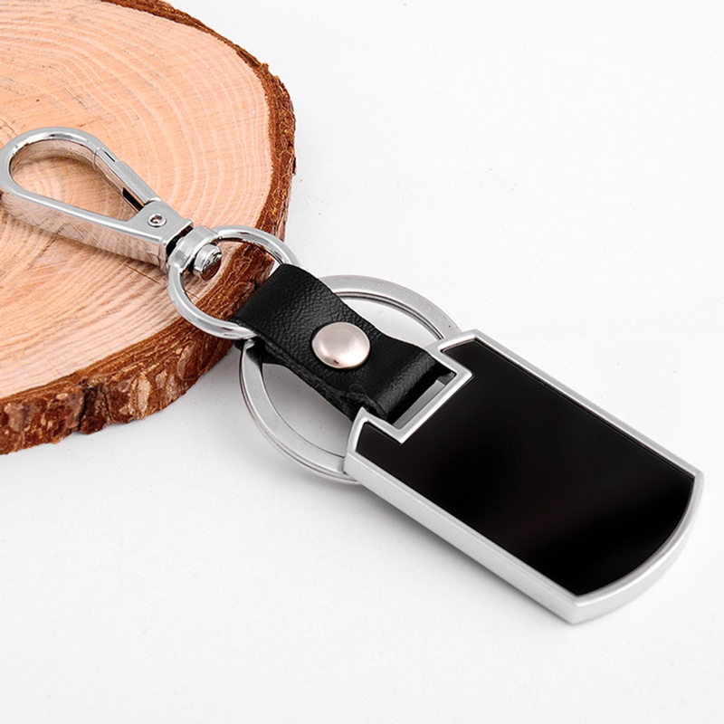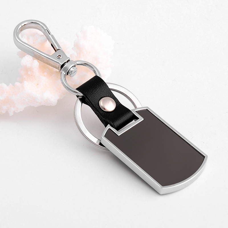 Black blank leather metal keychain