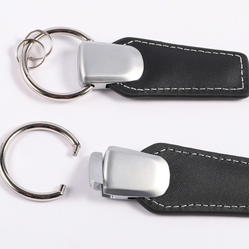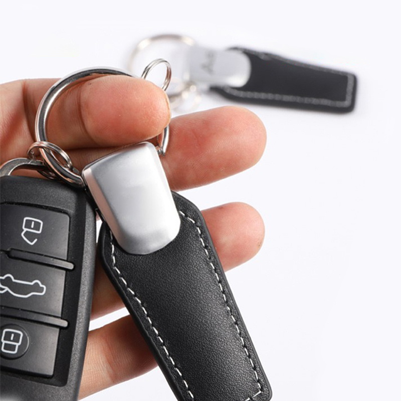 This keychain features a black leather strap with white stitching and a polished metal accent. With a sleek, minimalist style, it’s perfect for professionals as a daily key accessory, ideal for organizing keys or gifting to those who value understated, durable elegance in everyday use.