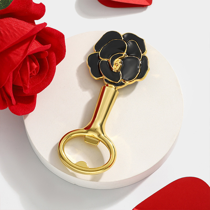 This 53g (9.6cm) opener features a sleek black enamel rose top (with metallic trim) paired with gold/silver handles. It pops caps smoothly, blending elegant, edgy floral charm with modern style—ideal for chic events, anniversaries, or a sophisticated gift for dark-aesthetic lovers.