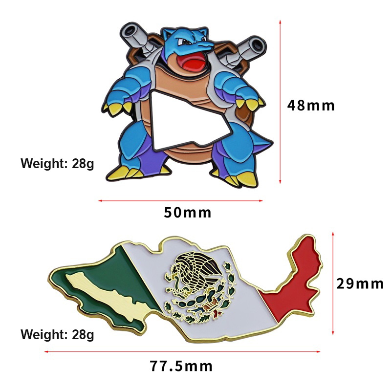 These pins come in two distinct shapes: vibrant Pokémon Blastoise (with dual cannon details) and Mexico’s map outline (adorned with national emblem & gold trim). Designed to decorate caps/bags, they bring unique themed flair—ideal for Pokémon fans & Mexico culture lovers to add vivid personality to accessories.