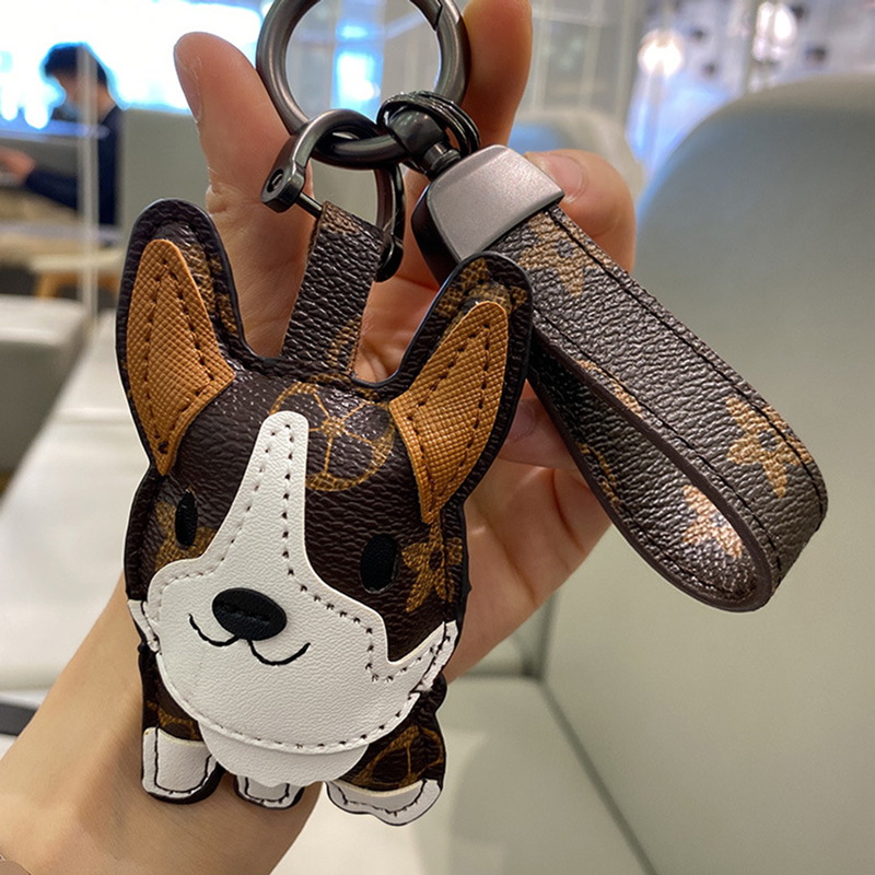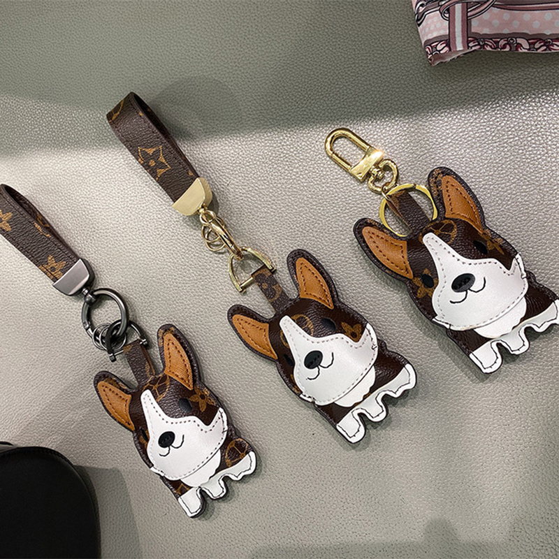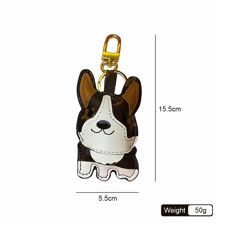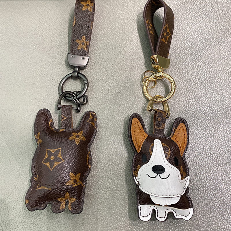 Made of brown monogram leather, these keychains feature cute Corgi designs with gold metal clasps and stylish straps. They’re perfect for organizing keys, adding a fashionable, playful touch, and are ideal for daily use in trend-focused and pet-loving lifestyles.