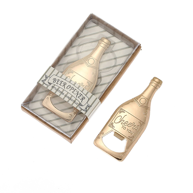 This 54g (11.7cm) rose gold opener mimics a champagne bottle, etched with "Cheers to You". It smoothly pops bottle caps, making it a festive favor for cocktail parties, weddings, or gatherings—packaged neatly for gifting.