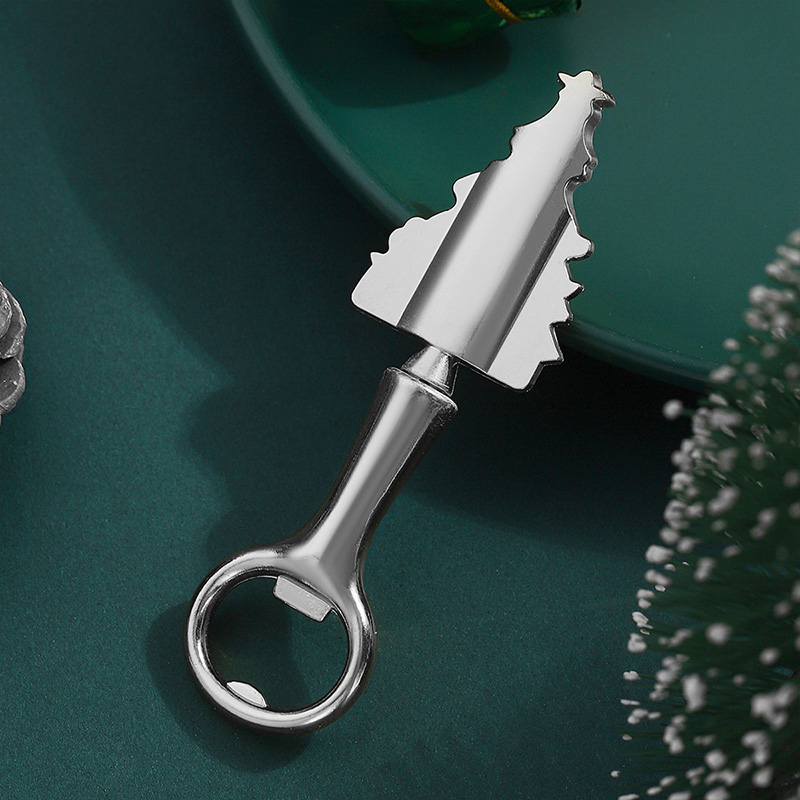 This 68g (10.4cm) opener is shaped like a festive Christmas tree (gold/silver metallic finish). It pops caps smoothly, blending holiday cheer with sleek decorative style—ideal for Christmas parties, winter gatherings, or a seasonal gift for holiday decor enthusiasts.