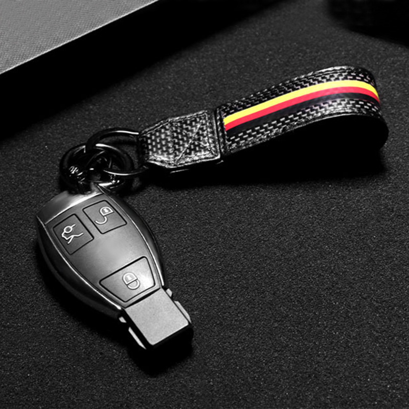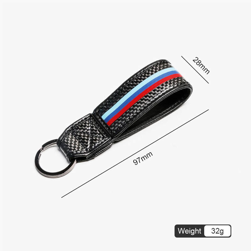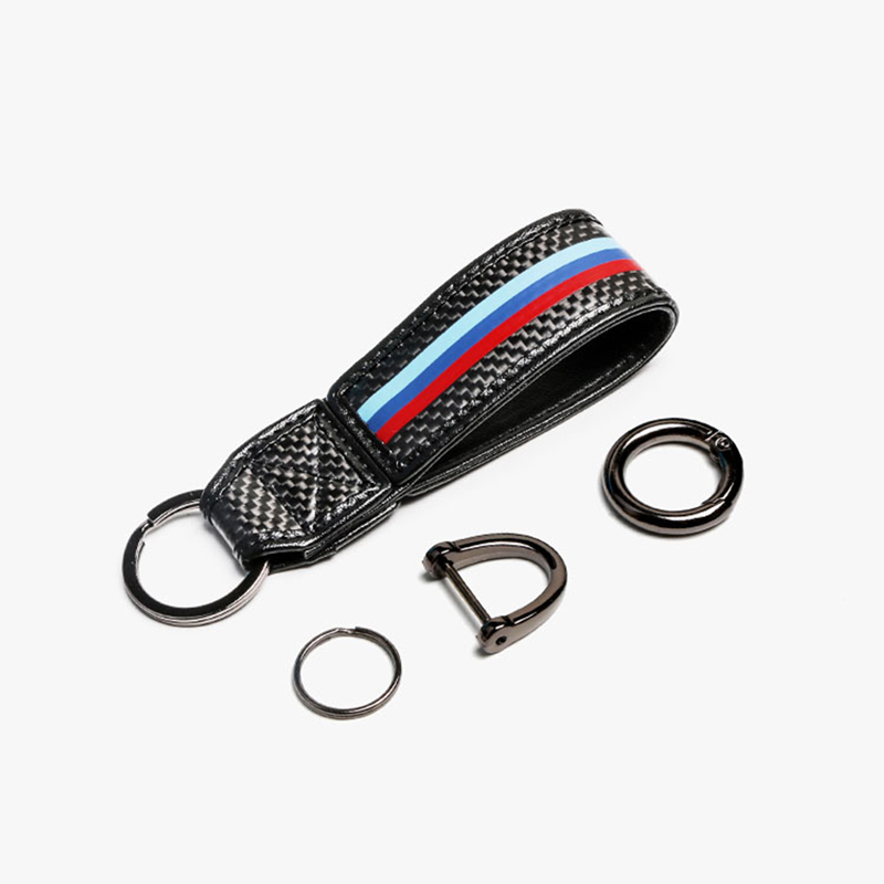 These carbon fiber keychains with color stripes are ideal for car enthusiasts. Perfect for attaching to car keys, they suit daily drives, auto shows, or as gifts for those passionate about automotive style, blending sporty design and practical use.