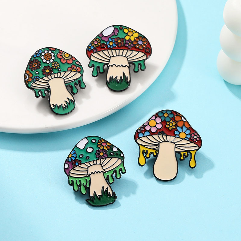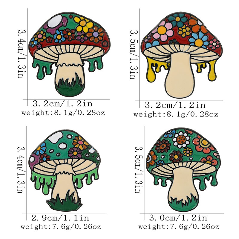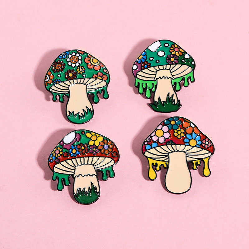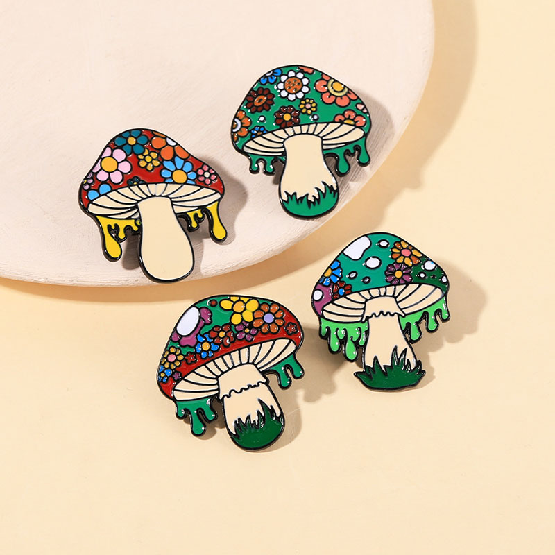 Features 4 vibrant, drippy-edge mushroom designs (floral-capped, multi-hued)—playful, boho vibes. Perfect for nature/boho fans to add quirky flair to bags/jackets, ideal for daily styling or whimsical fungi-themed accessory decor.