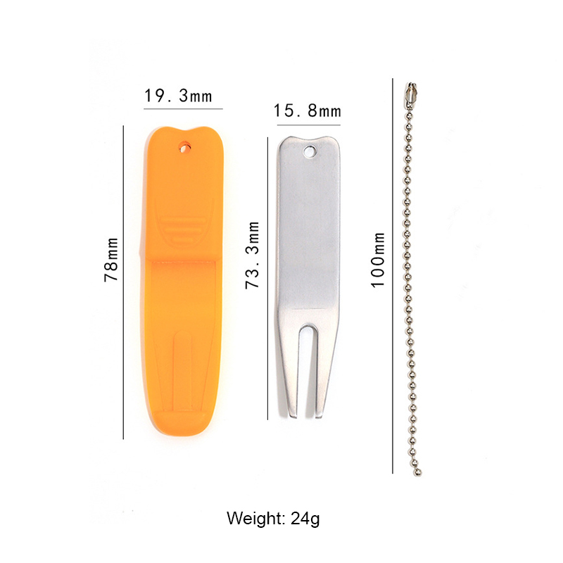 This 24g (78mm) tool features a silicone grip (multiple bright colors) + stainless steel fork, plus a 100mm chain for easy carrying. It’s comfortable to hold, durable for green repairs, and hard to misplace—ideal for casual rounds or golf bag organization.
