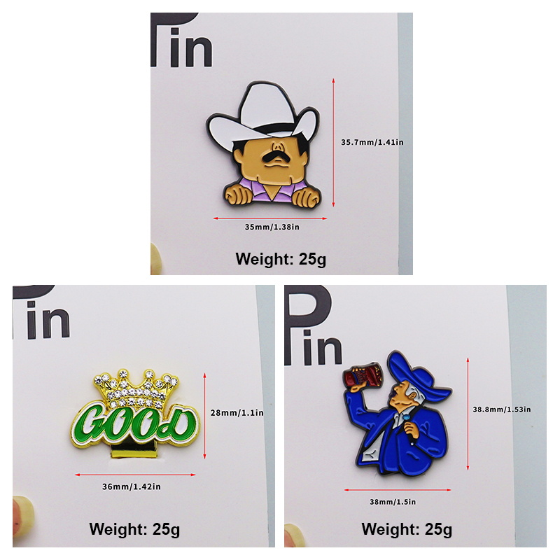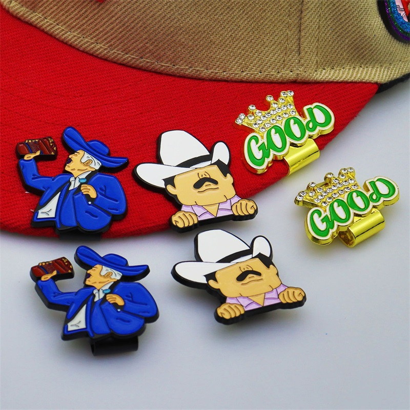 These hat clips mix two distinct designs: whimsical 3D cowboy character shapes (with vivid color details) and a sparkling "GOOD" letter shape (crowned with rhinestones). Both clip securely to caps, merging playful personality with eye-catching, unique styling.