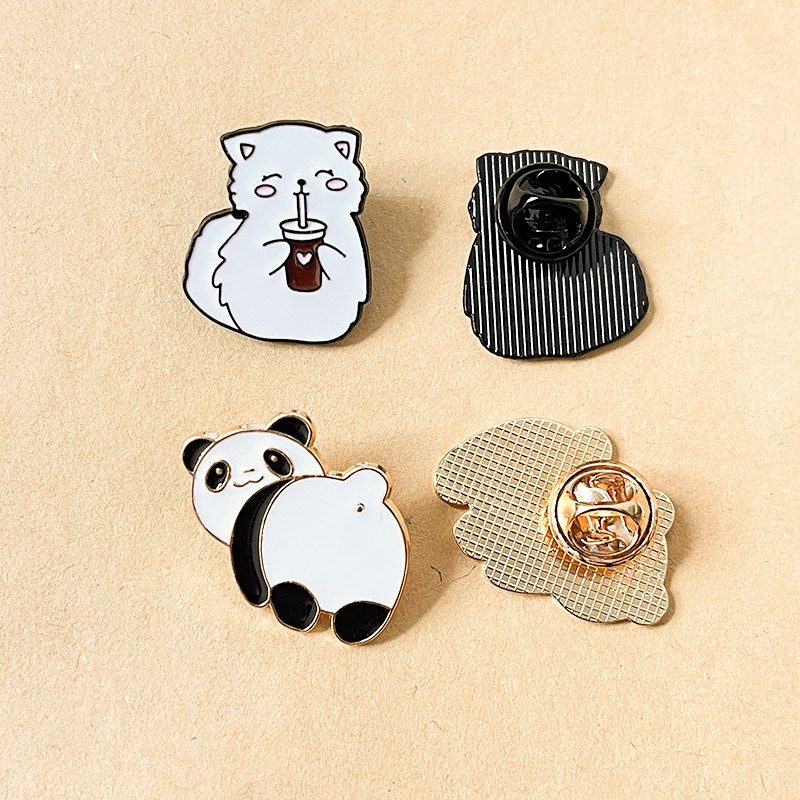 2 adorable pins (charming panda + drink-holding cat) — glossy enamel, playful details. Perfect for adding cute flair to bags/jackets; ideal for daily wear or animal-themed collectible decor.