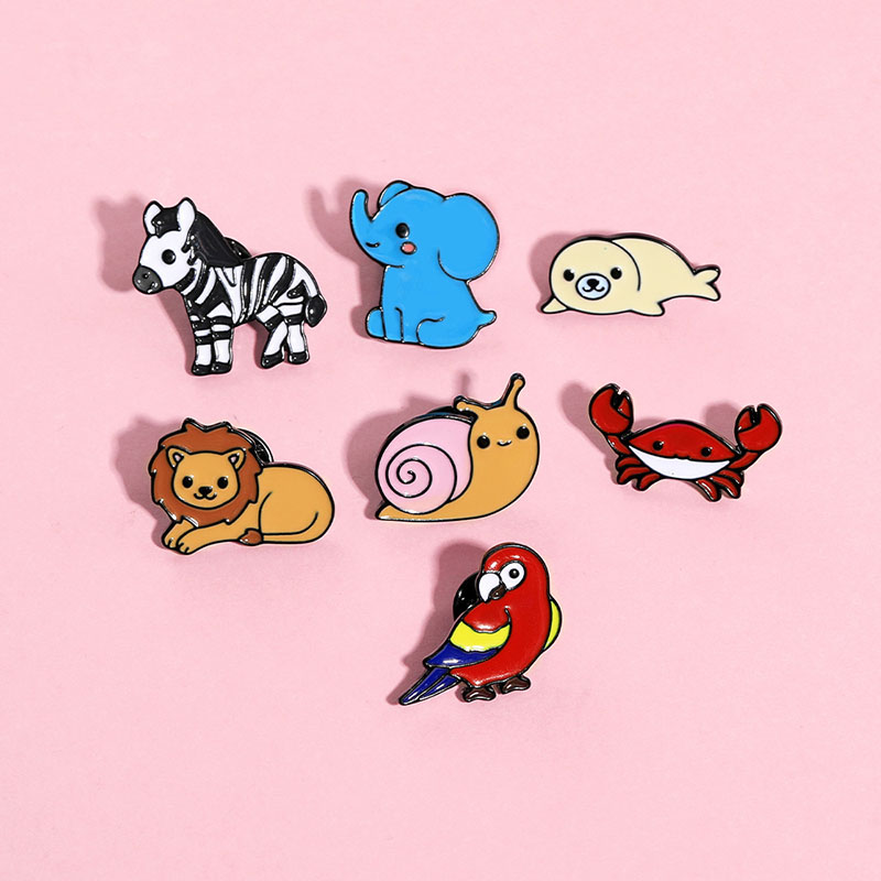 Features 7 glossy designs (elephant, lion, snail, zebra, crab, parrot, seal) with charming, playful vibes. Perfect for animal lovers to add whimsical flair to bags/jackets—ideal for daily styling or cute wildlife-themed accessory decor.