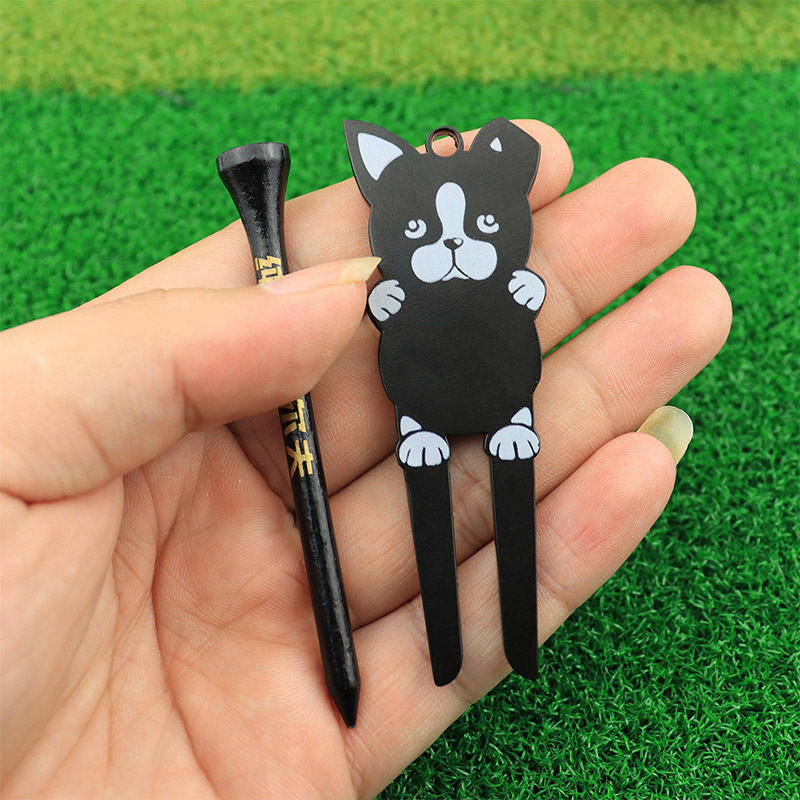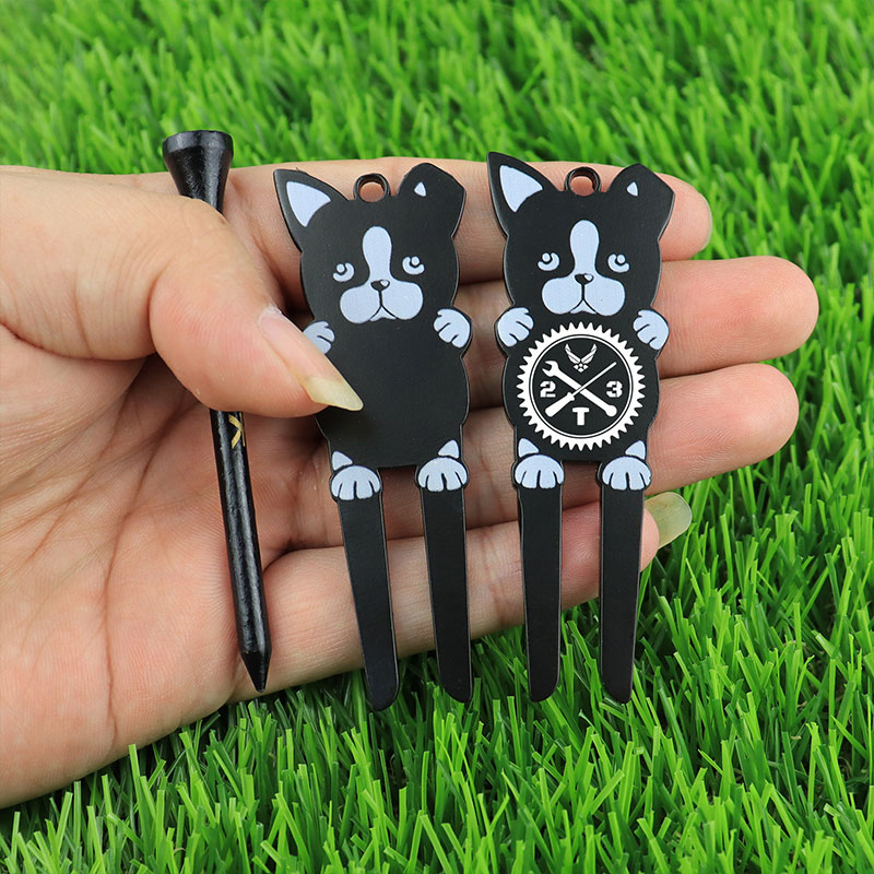 This 80mm compact (30g lightweight) divot tool features a charming Boston Terrier design (black/white finish) with a functional repair tip. Durable, cute, and easy to carry—perfect for green maintenance, adding a playful, personalized touch to any golfer’s gear.