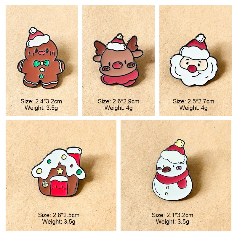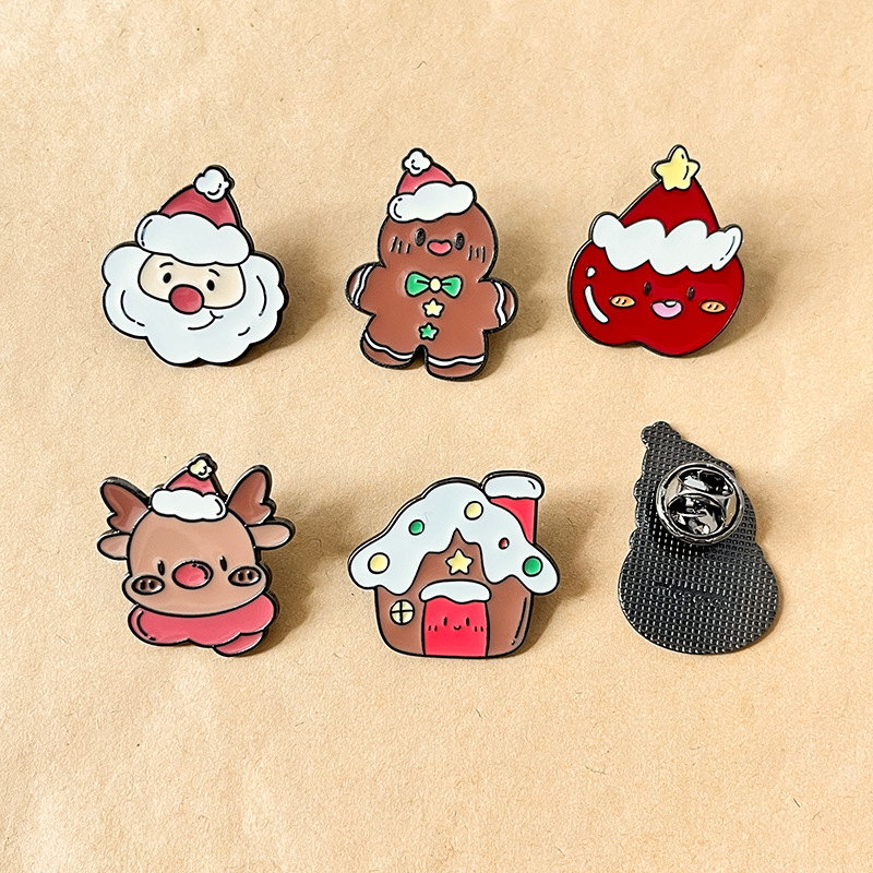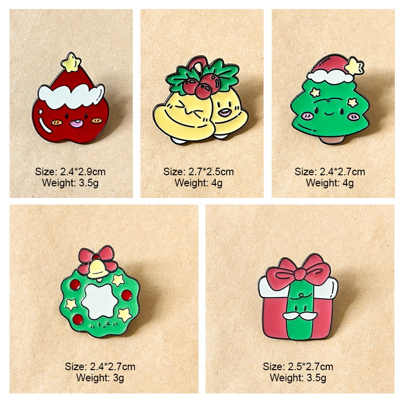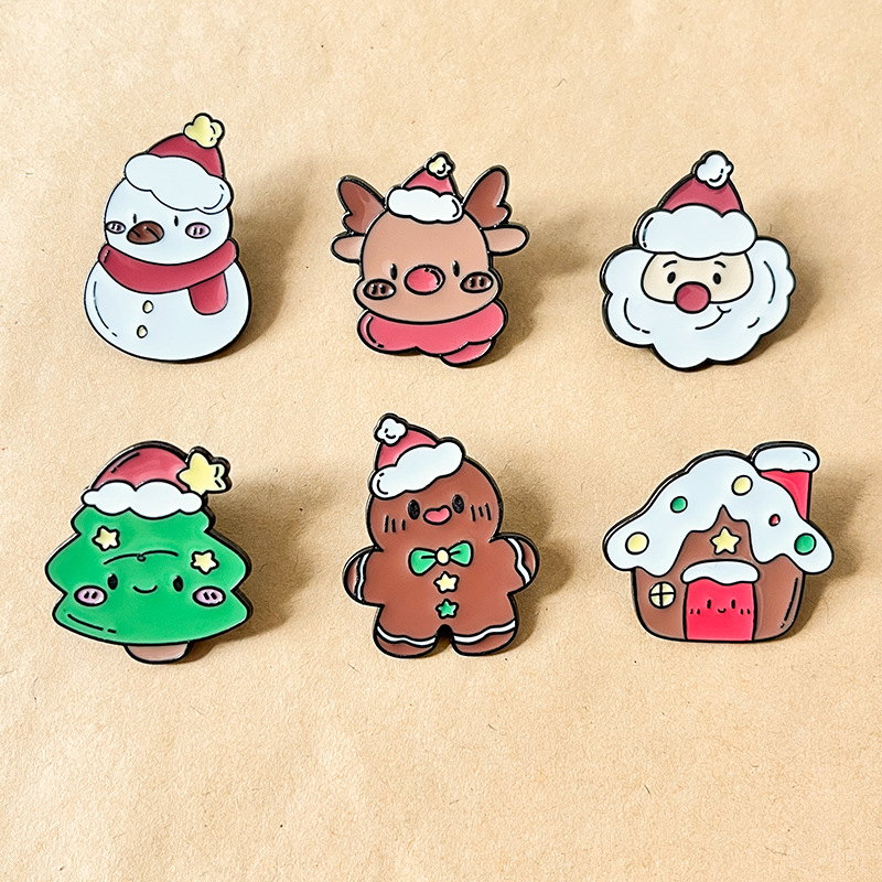 These pins have chibi-shaped Christmas icons (snowman, Santa, wreath, etc.) with soft, playful enamel. They attach easily to tote bags, winter sweaters, or gift wrap—infusing daily items with cute festive charm, great for holiday styling or seasonal accessory decor.