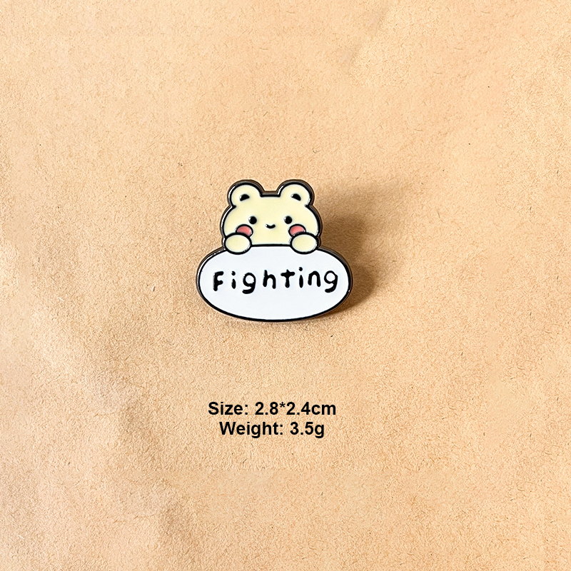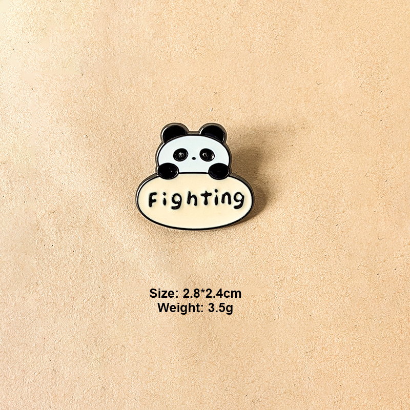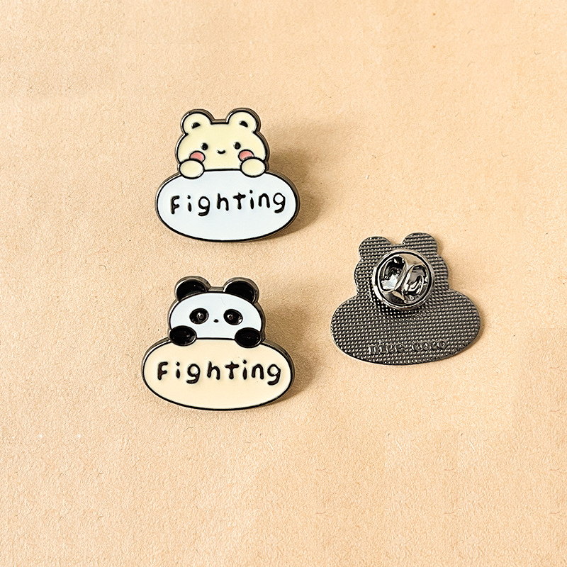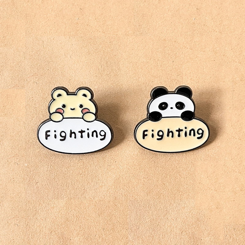 These charming enamel pins (smooth finish, crisp metal outlines) feature a panda and bear peeking over "Fighting" plaques—blending adorable animal charm with uplifting vibes. Perfect for adding cheerful motivation to bags/jackets or gifting as heartfelt keepsakes.