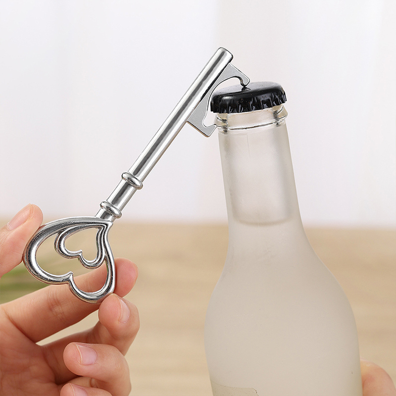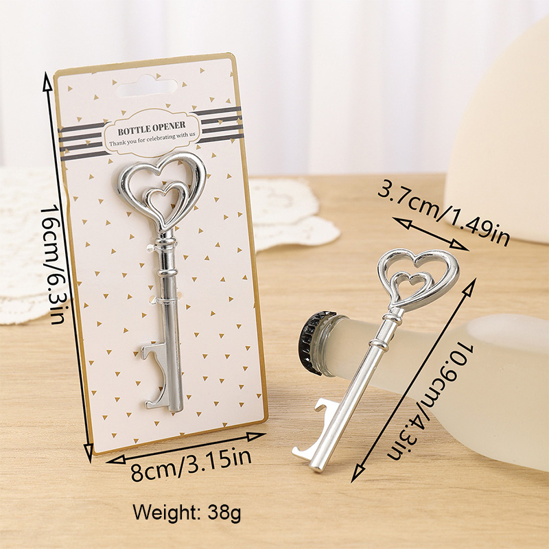 This 38g (16cm) opener is shaped like a vintage key with a double-heart handle (polished silver finish). It pops caps smoothly, blending romantic charm with decorative flair—ideal for engagement parties, Valentine’s events, or a heartfelt gift for love-themed decor lovers.