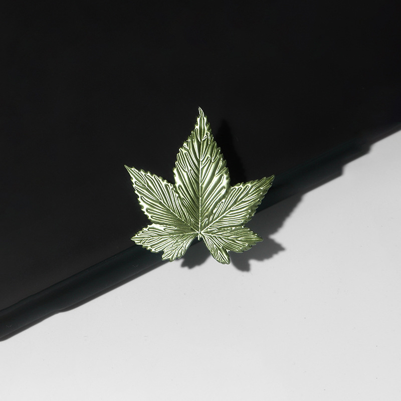 This pin boasts a lifelike maple leaf shape—with precise vein texturing and smooth, metallic-green enamel. It secures via a sturdy pin clasp, ideal for accenting blazer lapels, silk scarves, or tote bag handles, adding subtle, nature-infused elegance to both casual and formal looks.