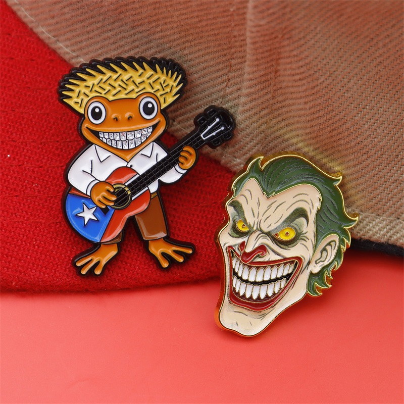 Unique Stylish Cap/Bag DecorBoasting a rhinestone-toothed guitar-playing frog and a vivid Joker head (vibrant enamel finishes), these pins add playful, edgy flair to caps/bags—ideal for pop culture fans.