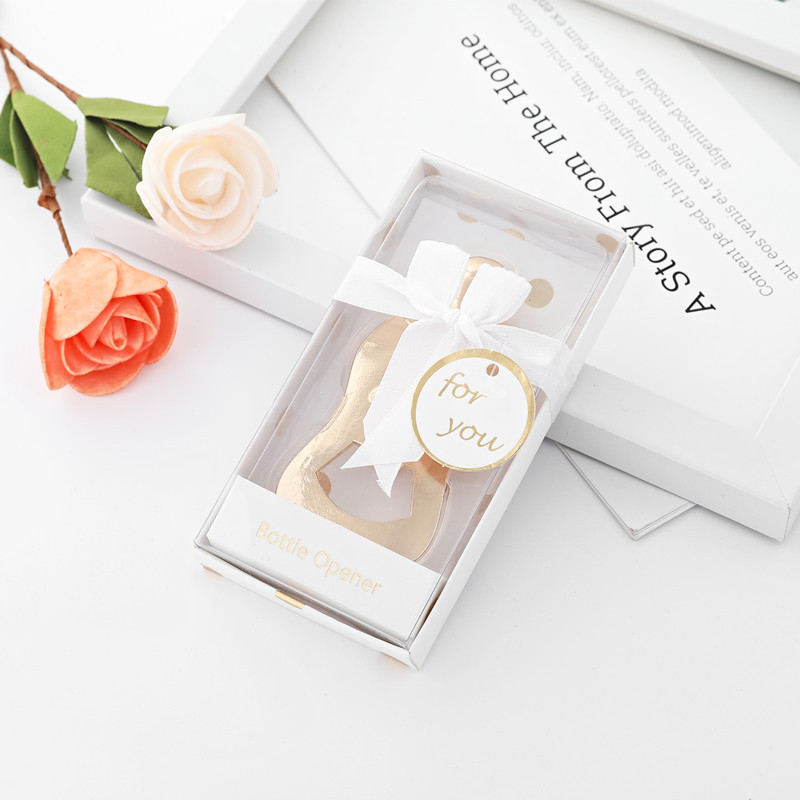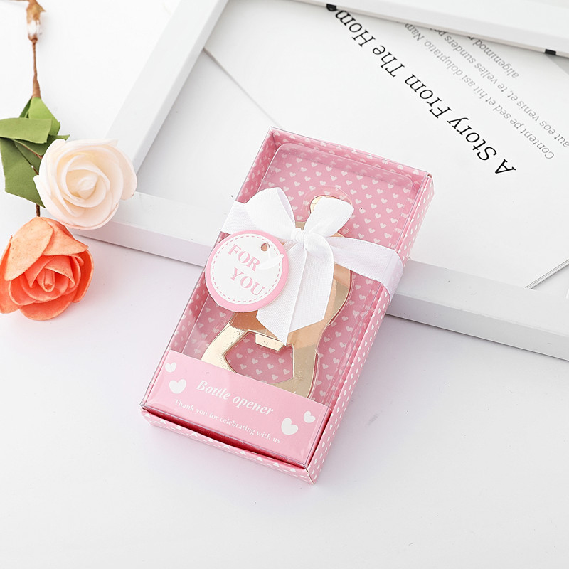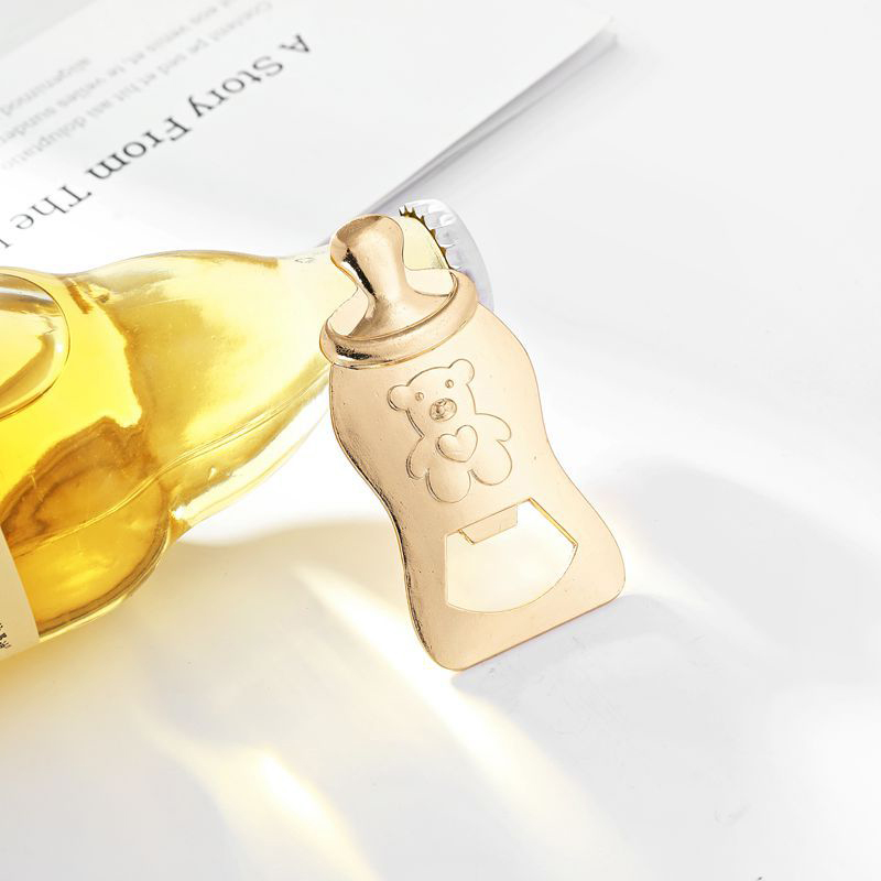 This 50g opener is shaped like a glossy gold baby bottle (with a teddy bear design). It pops caps smoothly, blending cute baby-shower charm with elegant decor—ideal for gender reveals, baby celebrations, or a sweet gift for new parents.