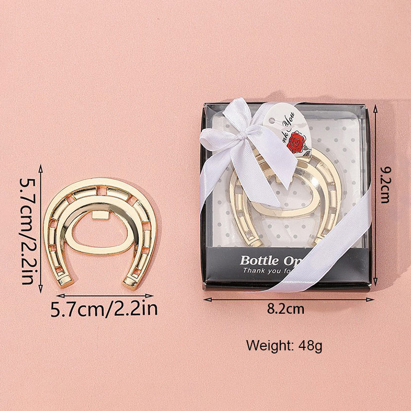 This 48g (5.7cm) glossy gold opener takes the iconic horseshoe shape (a symbol of good luck). It pops caps smoothly, making it a charming, symbolic favor for weddings, housewarmings, or as a lucky gift for gatherings and daily use.