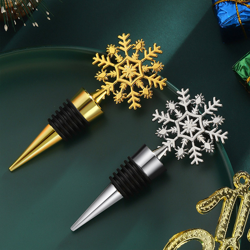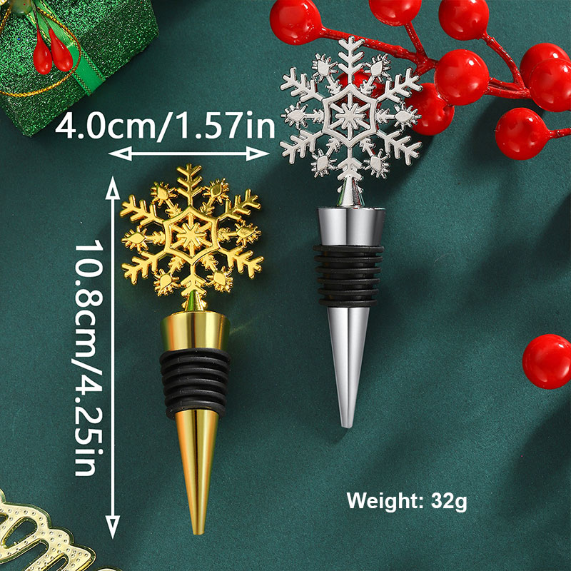 This 32g stopper is shaped like an intricate gold/silver snowflake. It seals wine bottles tightly via the silicone grip, doubling as a winter-themed decor piece—ideal for holiday parties, cold-weather gifting, or adding a frosty charm to wine collections.