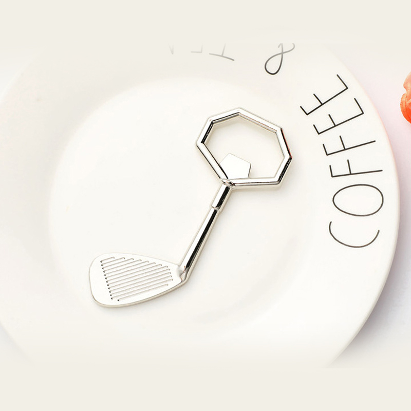 This 35g silver opener mimics a golf club (club head + hexagonal "ball" cap). It pops caps smoothly, blending sporty charm with sleek design—ideal for golf-themed parties, bachelor events, or a playful gift for golf enthusiasts and sports gathering attendees.