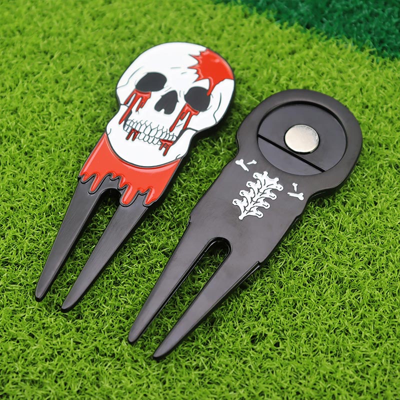 This 45g (90mm) skull-shaped tool (white/red/black) fixes green divots with its bold, gothic design. Its dripping-red detail adds edgy flair, merging on-course functionality with dark, statement-making style—perfect for golfers who love distinctive gear.