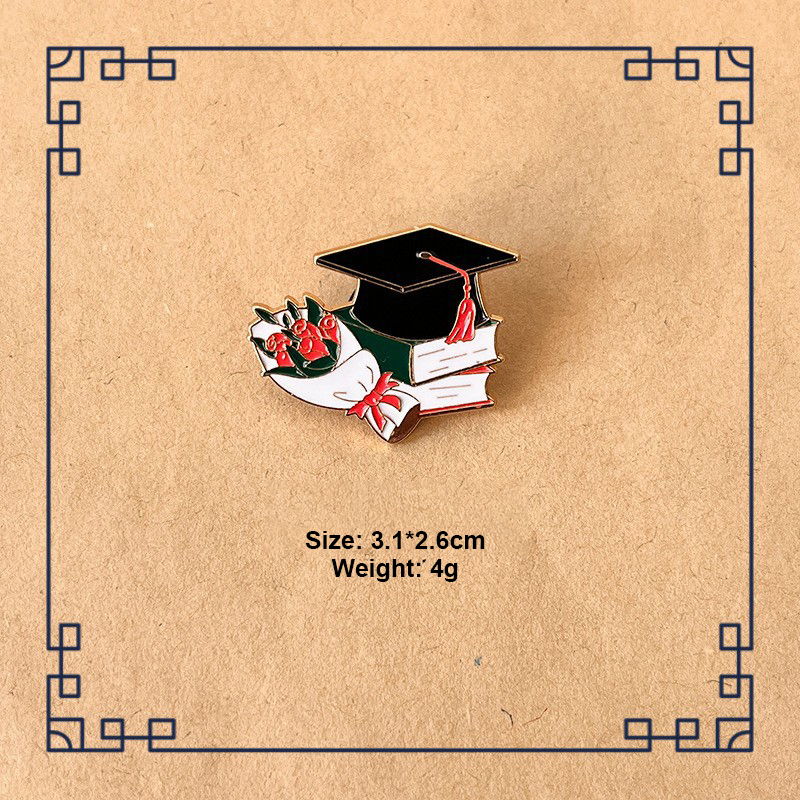 2 elegant pins (cap with book/bouquet, cap with diploma) — sleek black, vivid red accents. Perfect for graduates to mark milestones on bags/jackets; ideal as meaningful academic collectibles or gifts.