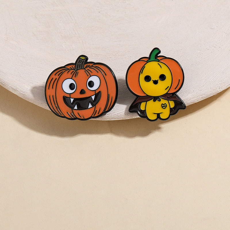 This Halloween pumpkin pin set has 2 glossy enamel designs: a pumpkin-costumed bear and a grinning jack-o'-lantern, brimming with playful spooky charm. For festive fans, it adds whimsical flair to bags/jackets—ideal for Halloween styling or seasonal, eerie-cute accessory decor.