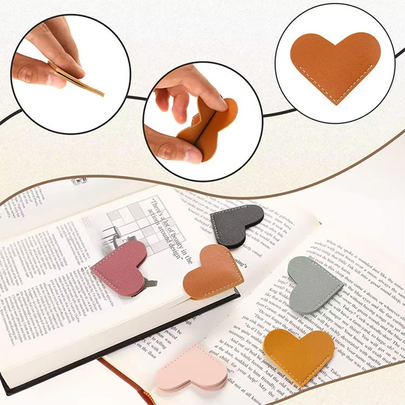 Smooth, durable leather in pastel hues; heart design adds charm. Gentle on pages, reusable, and perfect for organizing reads or gifting to book enthusiasts.