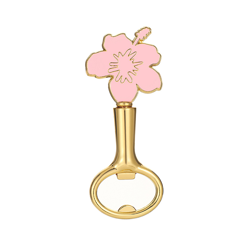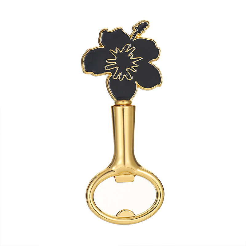 This 48g (9.6cm) opener features a vibrant hibiscus flower top (in blue/white/black/pink enamel) paired with a gold handle. It pops caps smoothly, blending tropical floral charm with playful color—ideal for luau parties, beach weddings, or a cheerful gift for flower lovers.