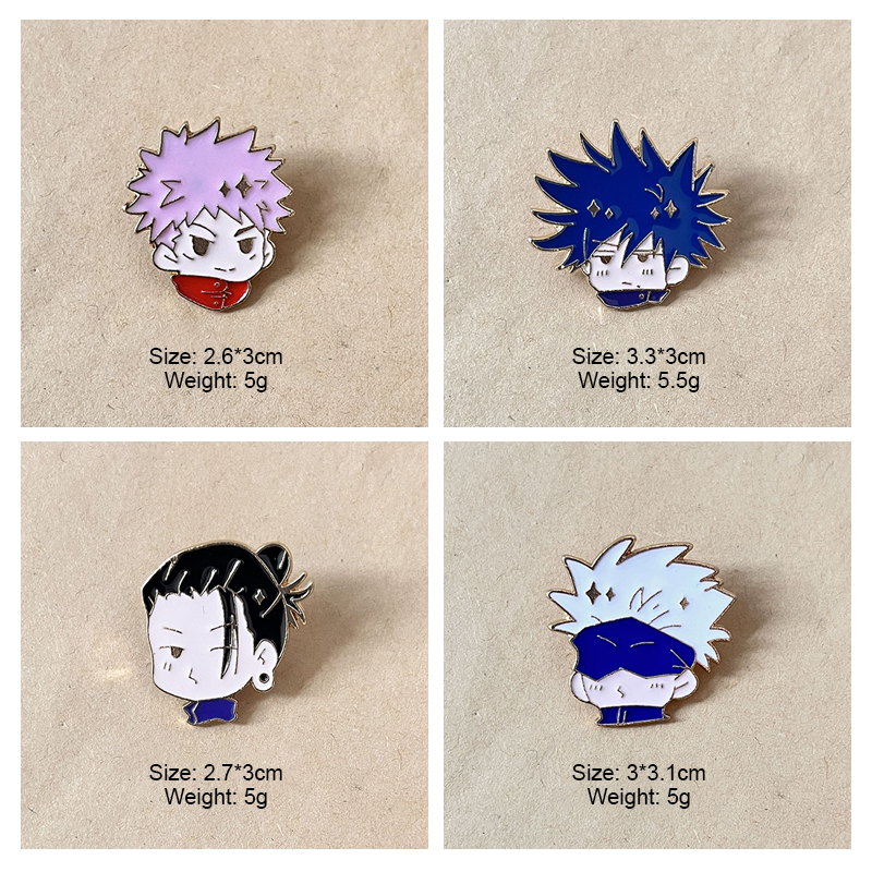 8 cute Jujutsu Kaisen chibi pins (Gojo, Yuji, Megumi, etc.) — vibrant enamel, crisp details. Perfect for anime fans to add fandom flair to bags/jackets; ideal for daily wear or JJK collectible decor.
