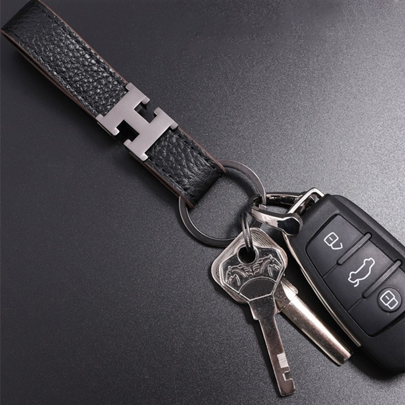 This keychain features a sleek design with leather straps and metallic H-buckles in colors like orange, blue, and black. With a luxury, minimalist style, it’s perfect for car owners as a chic key accessory, ideal for daily use or gifting to those who appreciate refined, practical elegance.