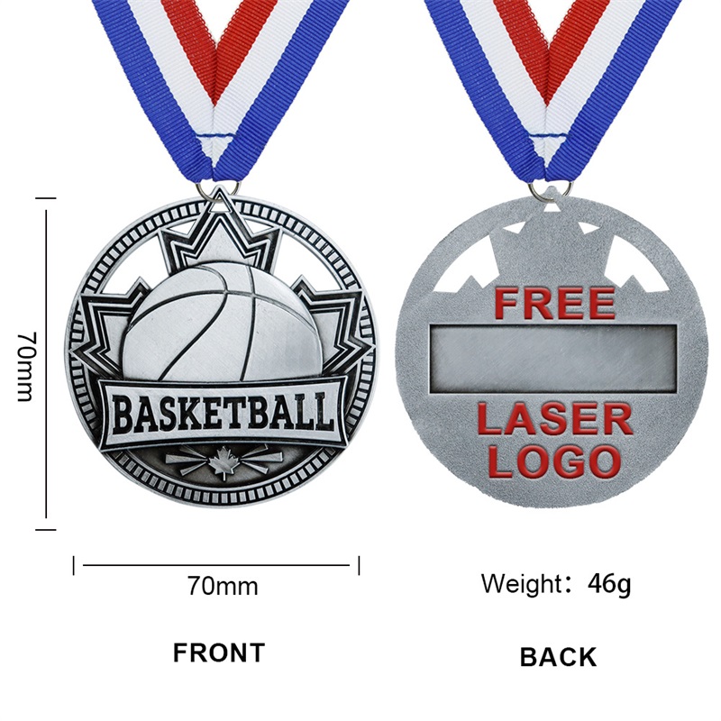 Tailored for basketball events, this antique gold/silver/red copper medal suits youth league championships, high school tournament MVPs, and team sportsmanship awards. Its star-basketball design and durable build make it a standout prize for recognizing skill, teamwork, and achievement across all levels of hoops competition.