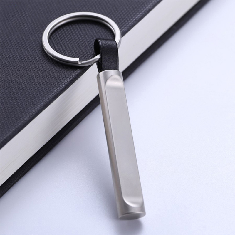This keychain features a sleek metal bar with a leather loop and silver key ring. With a minimalist, modern design, it’s ideal for professionals or design lovers as a daily key accessory, perfect for adding understated elegance to keys or bags, and also makes a sophisticated gift.