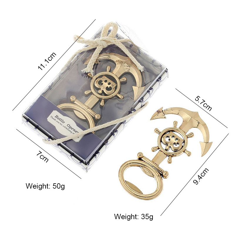 This 35-50g opener features a gold anchor + ship wheel design (with a skull detail, fitting pirate/nautical themes). It pops caps smoothly, blending maritime adventure charm with playful style—ideal for pirate parties, beach events, or a fun gift for sea-themed decor fans.