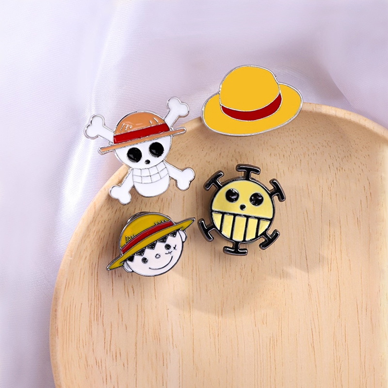 These 4 iconic One Piece pins feature key symbols (Straw Hat, Jolly Roger, Luffy) with vibrant, fan-focused flair. Ideal for anime lovers to add pirate-themed charm to bags/jackets—great for daily wear or showcasing your One Piece collectible style.
