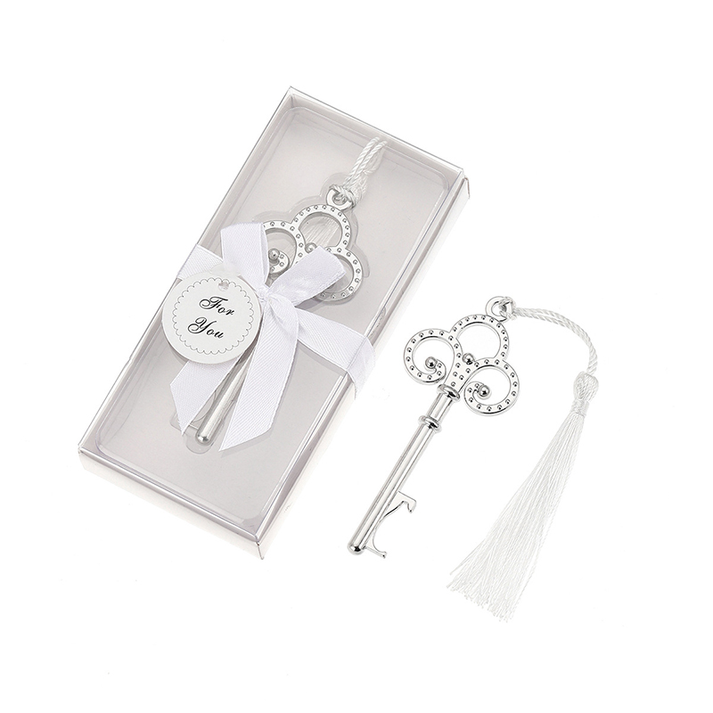 This 46g (10cm) opener mimics a decorative key (in rose gold/silver) with a tassel detail. Its intricate, curved handle design pops caps smoothly, blending vintage elegance with romantic charm—ideal for weddings, anniversaries, or a thoughtful gift for loved ones.