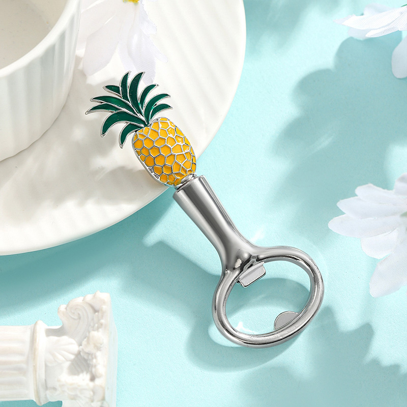 This 42g (9.7cm) opener features a vivid enamel pineapple top (yellow-green) paired with a gold/silver handle. It pops caps smoothly, blending tropical fruit charm with playful color—ideal for luau parties, summer gatherings, or a cheerful gift for pineapple lovers.