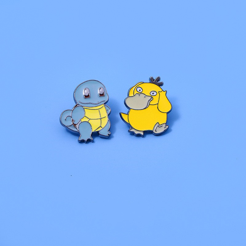 4 iconic Pokémon pins (Squirtle, Snorlax, Gengar, Psyduck) — vibrant enamel, true-to-design details. Perfect for Pokémon fans to add fandom flair to bags/jackets; ideal for daily wear or Pokémon collectible decor.