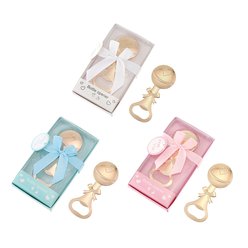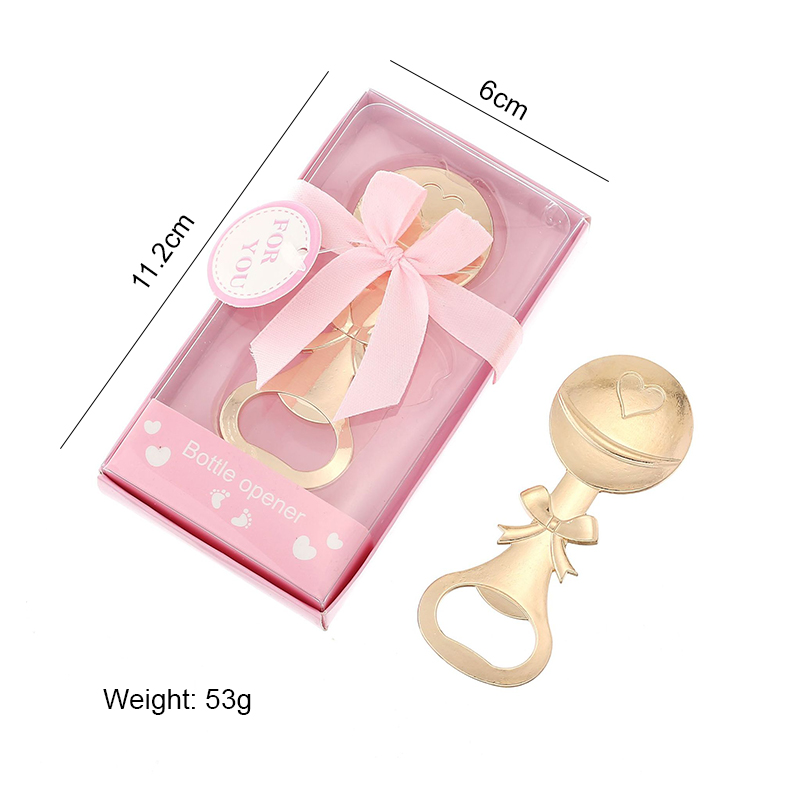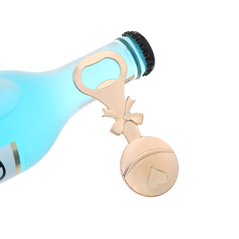 This 53g opener is shaped like a glossy rose gold baby rattle (with heart and bow accents). It smoothly pops bottle caps, blending cute baby-themed charm with practicality—ideal for baby showers, gender reveals, or gifting to new parents.