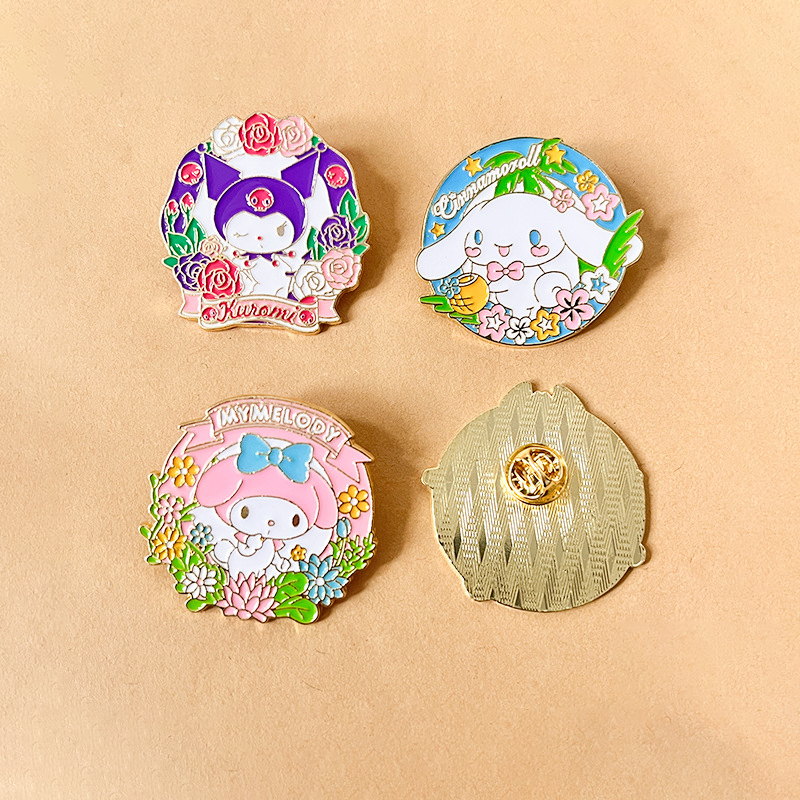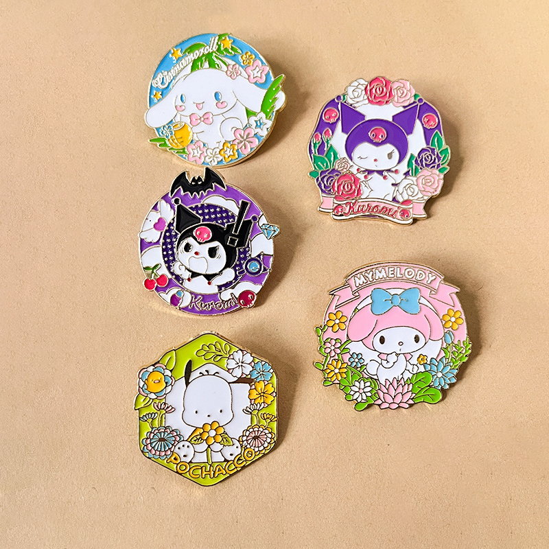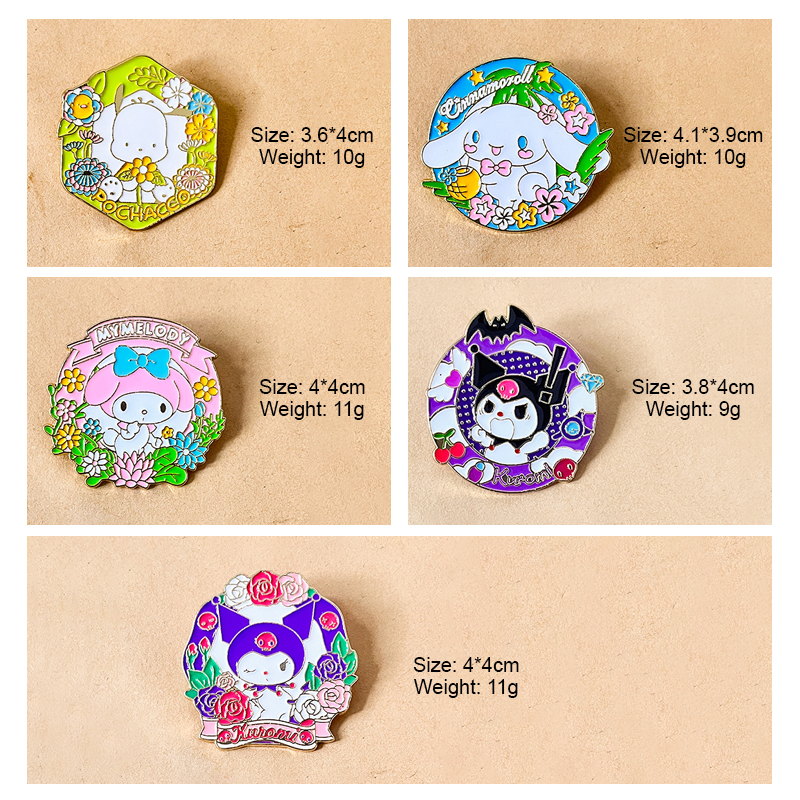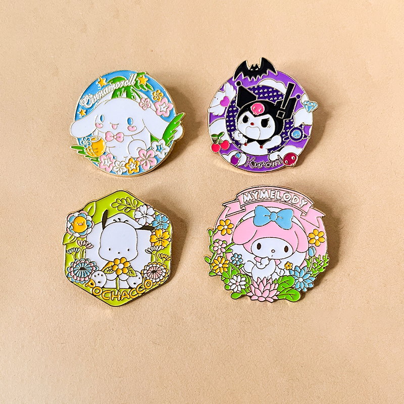 These pins come in varied shapes (round, octagon, decorative banner),adorned with vibrant floral details and glossy enamel. They easily attach to backpacks, denim jackets, or hat brims—perfect for Sanrio fans to infuse garden-themed charm into daily accessories or showcase in their character collections.