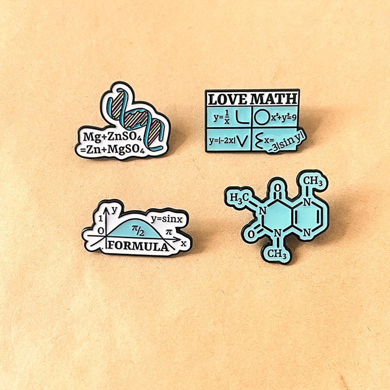These pins take subject-themed shapes (chemistry structure, math equation board, DNA helix) with crisp, vivid enamel. They attach easily to backpacks, lab coats, or lanyards—adding clever academic charm to daily items, ideal for science/math lovers’ styling or collection.