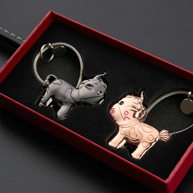 This keychain set features sheep-shaped pendants in rose gold, silver, gold, and black metal, with cable straps. With a cute, whimsical style, it’s ideal for couples to organize keys, perfect for adding a playful touch to bags, and suits gifting or daily use in romantic and animal-loving lifestyles.