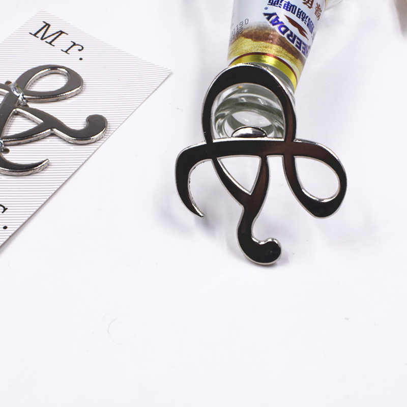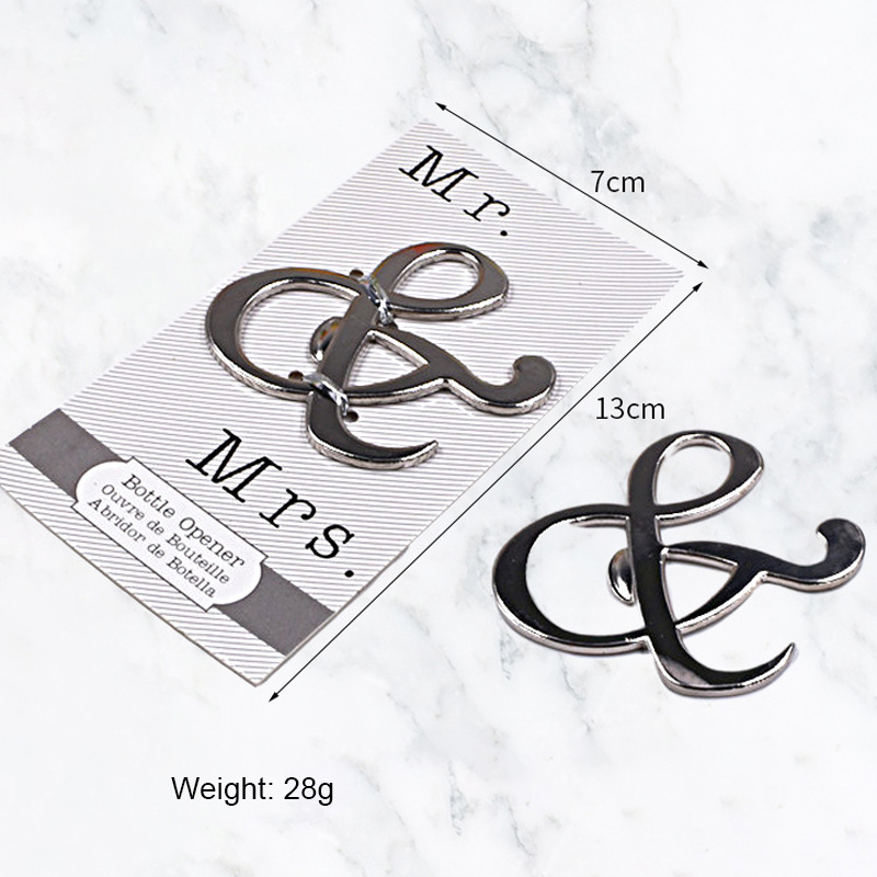 This 28g opener is shaped like a sleek silver ampersand (tied to "Mr. & Mrs." themes). It smoothly pops bottle caps, blending elegant wedding symbolism with practicality—ideal for bridal showers, weddings, or gifting to newlyweds.