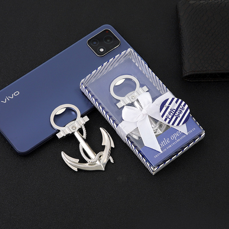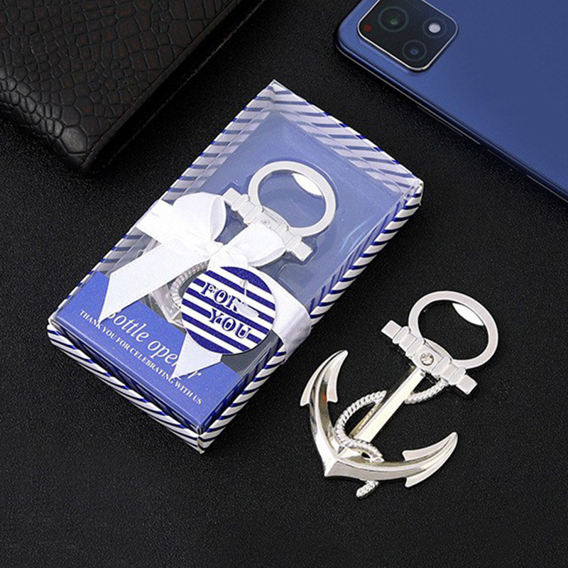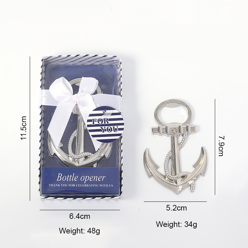 This 34g (7.9cm) sleek silver opener mimics a nautical anchor (with rope details), doubling as a keychain. It pops caps easily, making it a stylish favor for beach weddings, nautical-themed parties, or a practical accessory for sea lovers.