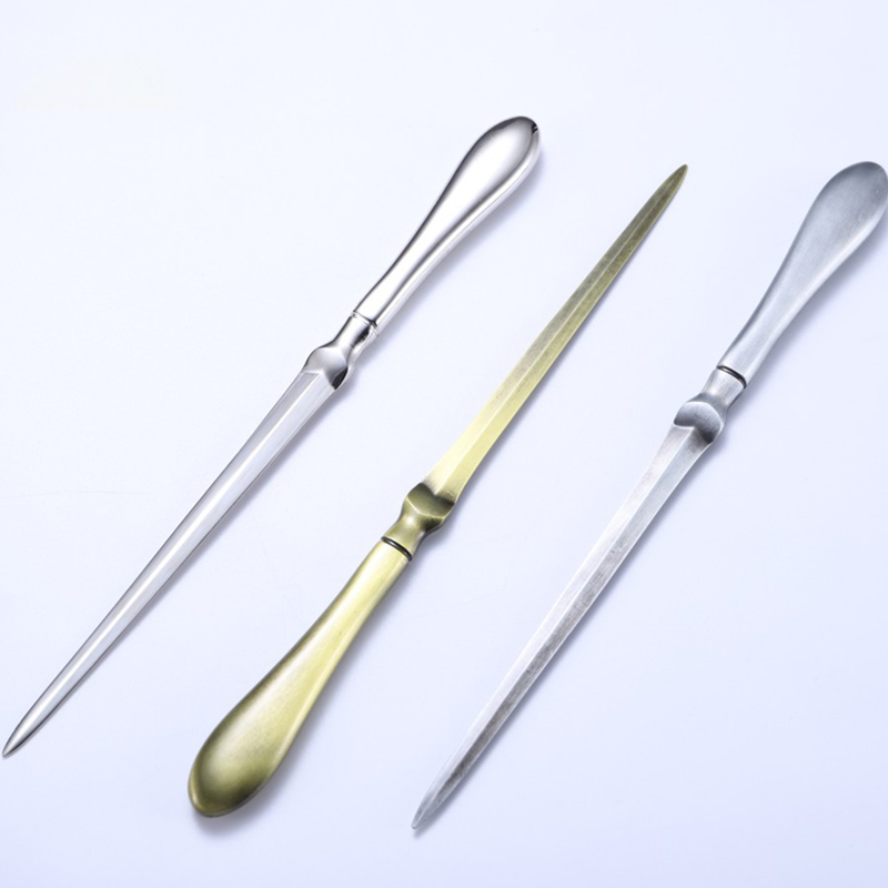 This elegant metal letter opener set (silver & antique gold) blends timeless design with sharp functionality: its sleek, polished handle offers a comfortable grip, while the precision-sharpened blade slices through envelopes smoothly. Sturdy, corrosion-resistant metal ensures long-lasting use, making it a stylish, practical addition to home desks or office stationery collections—ideal for daily mail tasks or gifting.